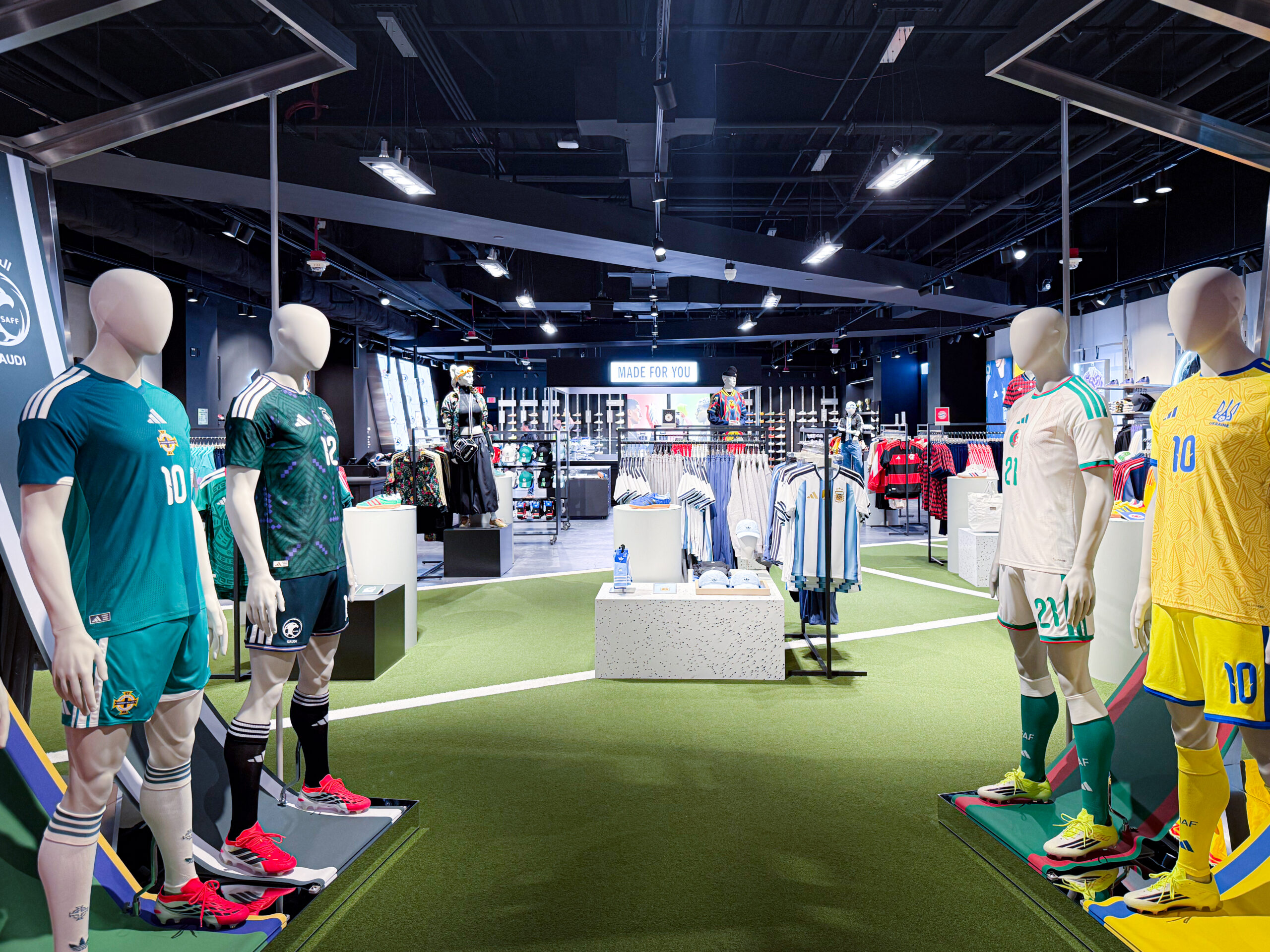 Completed in just 11 weeks, the project introduced a range of specialty elements, including custom turf modeled after official match pitches, millwork celebrating Adidas’ partner federations, and curated displays of soccer memorabilia. High-end finishes and custom furnishings elevated the environment from a transactional retail space to an experiential hub.